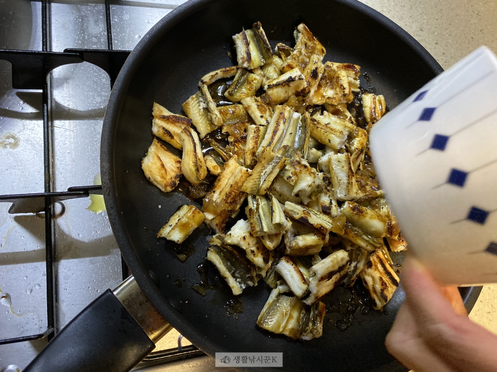 자! 이제 비법양념을 노릇노릇 구워놓은 붕장어에 투하합니다.