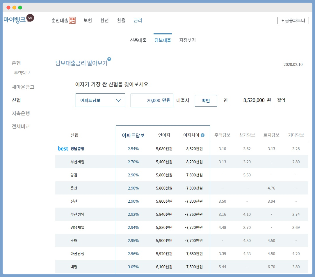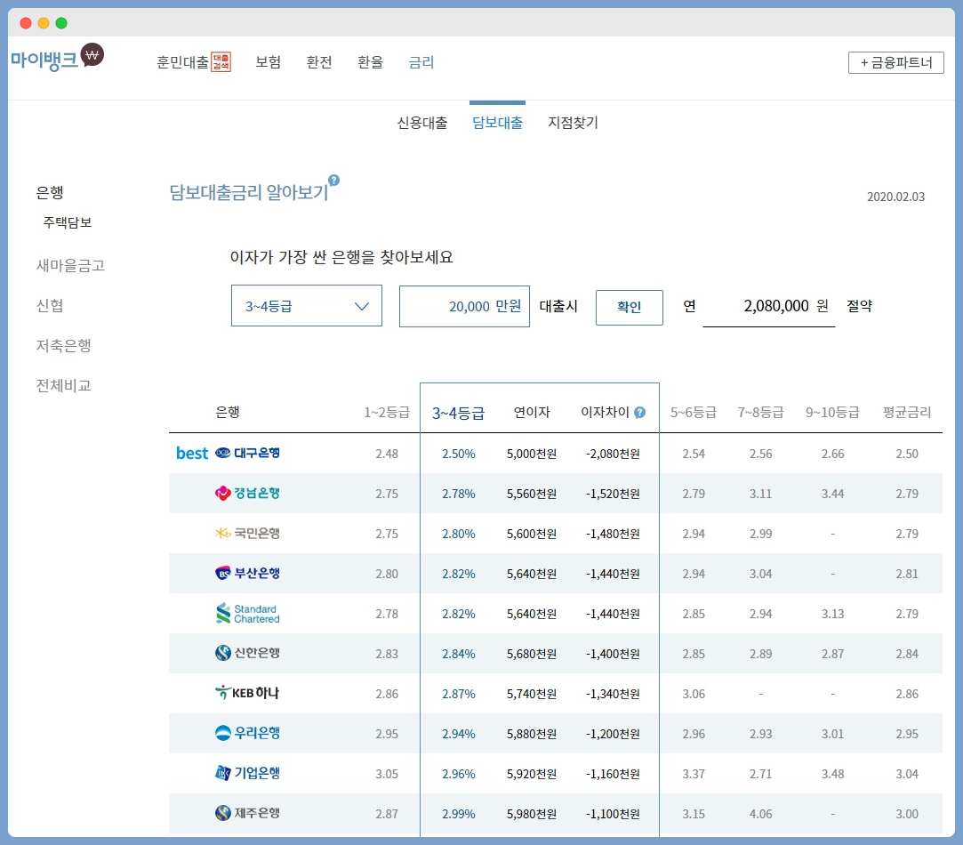 3.29%로 제일 금리가 싸네요.