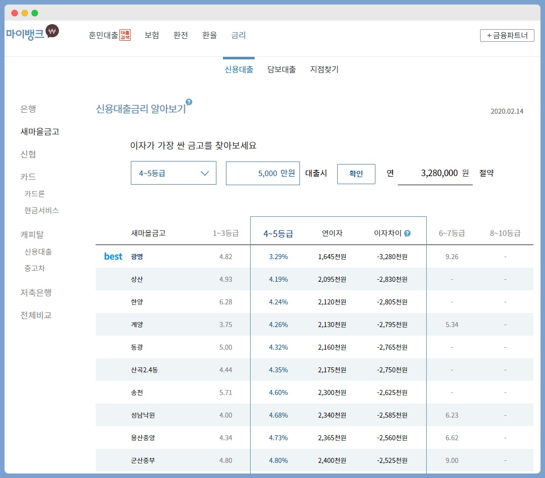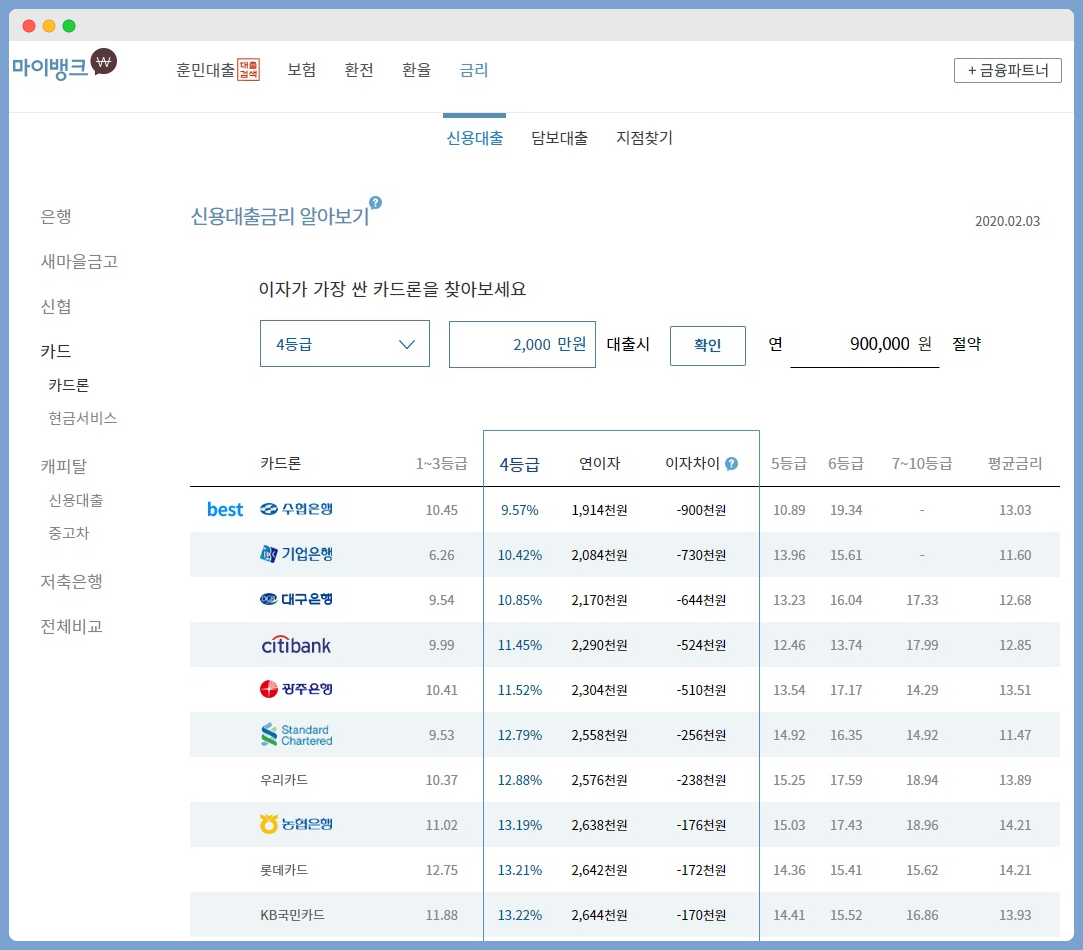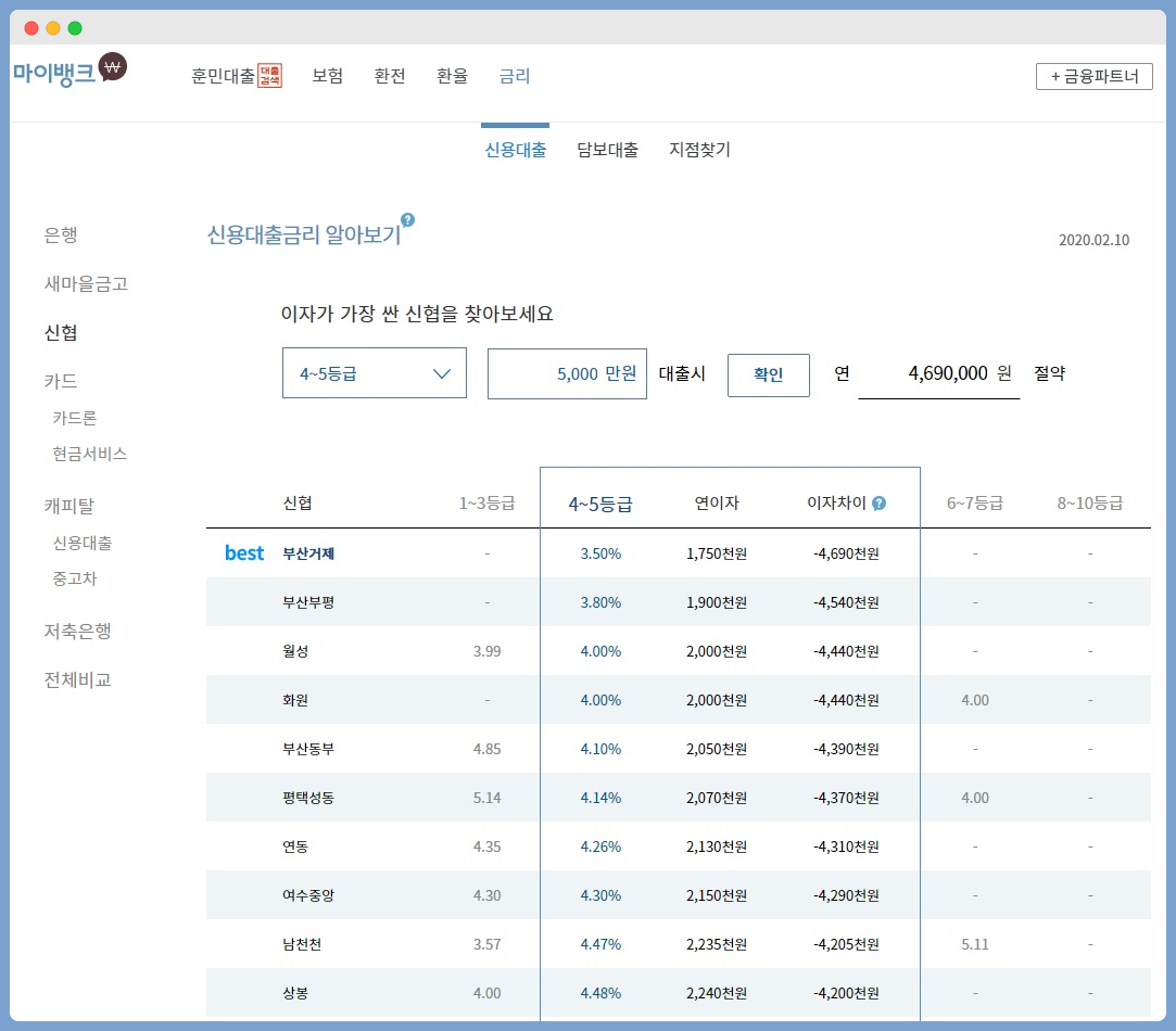 이 사이트가 정리가 잘 되어 있어서 신용대출도 한번 봤는데요.