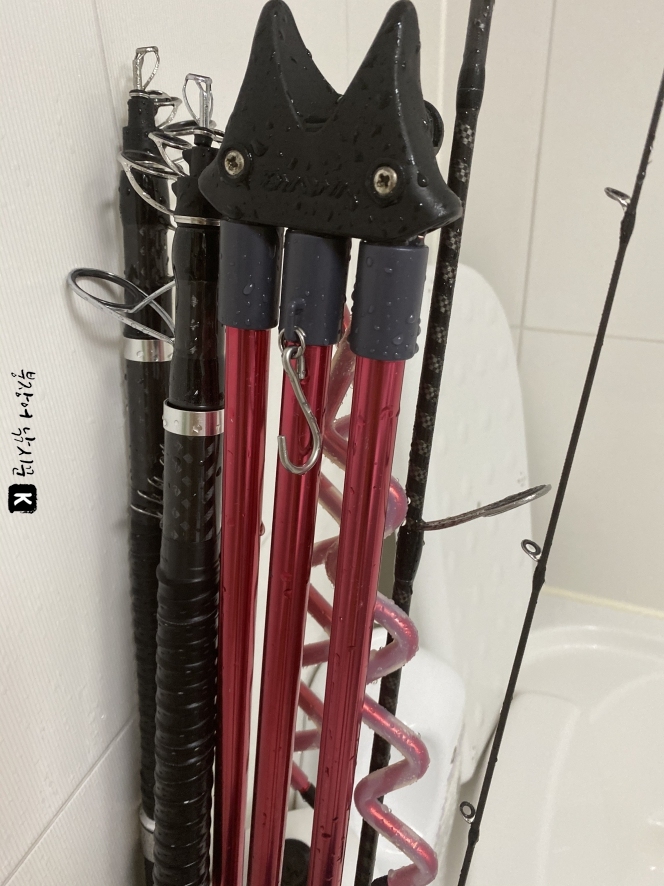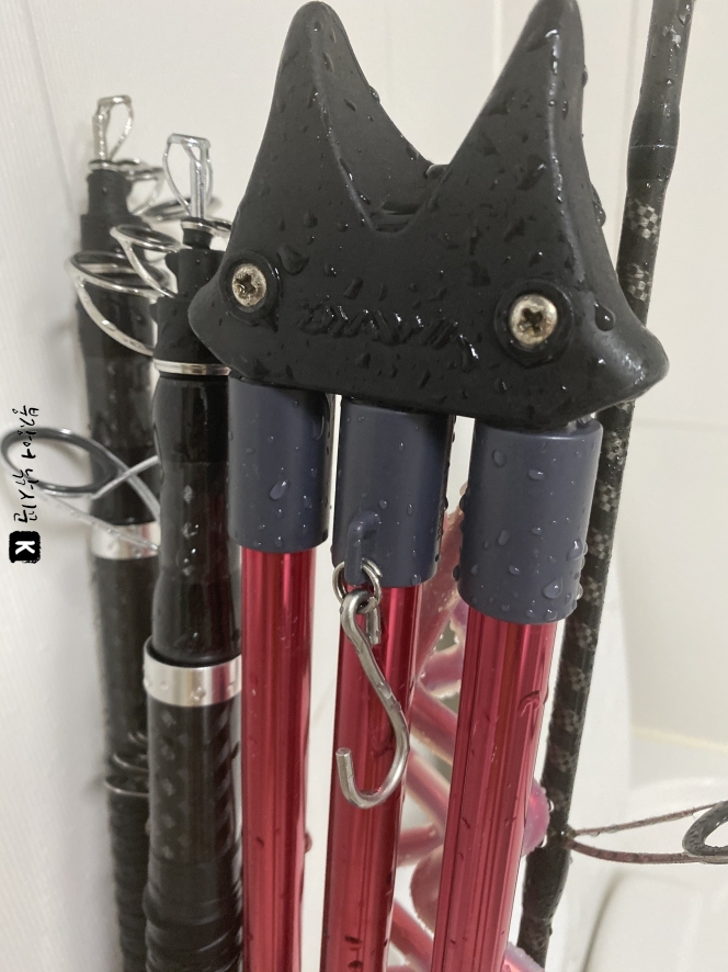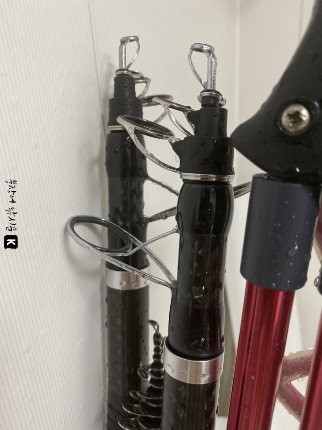 물기가 다 마른 다음에 거실에다가 낚시대를 펼쳐서 말려야 하고요.